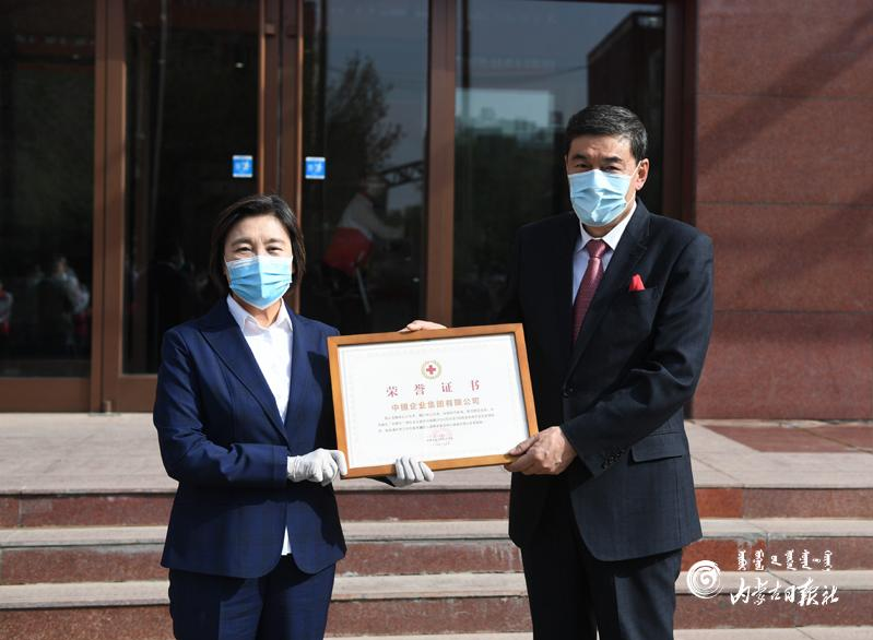 5月8日上午,中植企業(yè)集團(tuán)向內(nèi)蒙古“光明行”等公益項(xiàng)目及疫情防控捐贈(zèng)款物活動(dòng)在呼和浩特舉行。自治區(qū)主席、紅十字會(huì)名譽(yù)會(huì)長布小林向中植企業(yè)集團(tuán)頒發(fā)榮譽(yù)證書。中植企業(yè)集團(tuán)董事局主席兼首席執(zhí)行官解直錕代表公司接受榮譽(yù)證書。